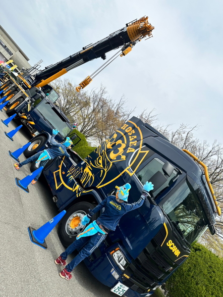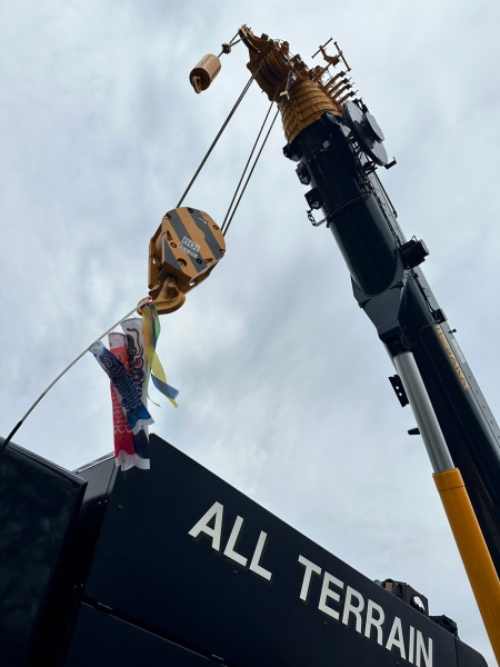 「こどもの日」にちなんで弊社のクレーン車にて、鯉のぼりを揚げさせて頂きました!