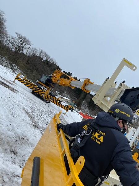 普段はクレーンオペレーターと鳶職のスタッフが