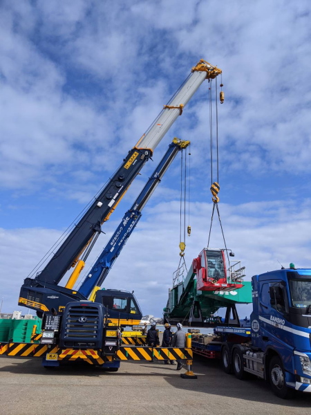 4月は工事部は千葉県銚子市で風車メンテナンス550tクレーン組み立て。