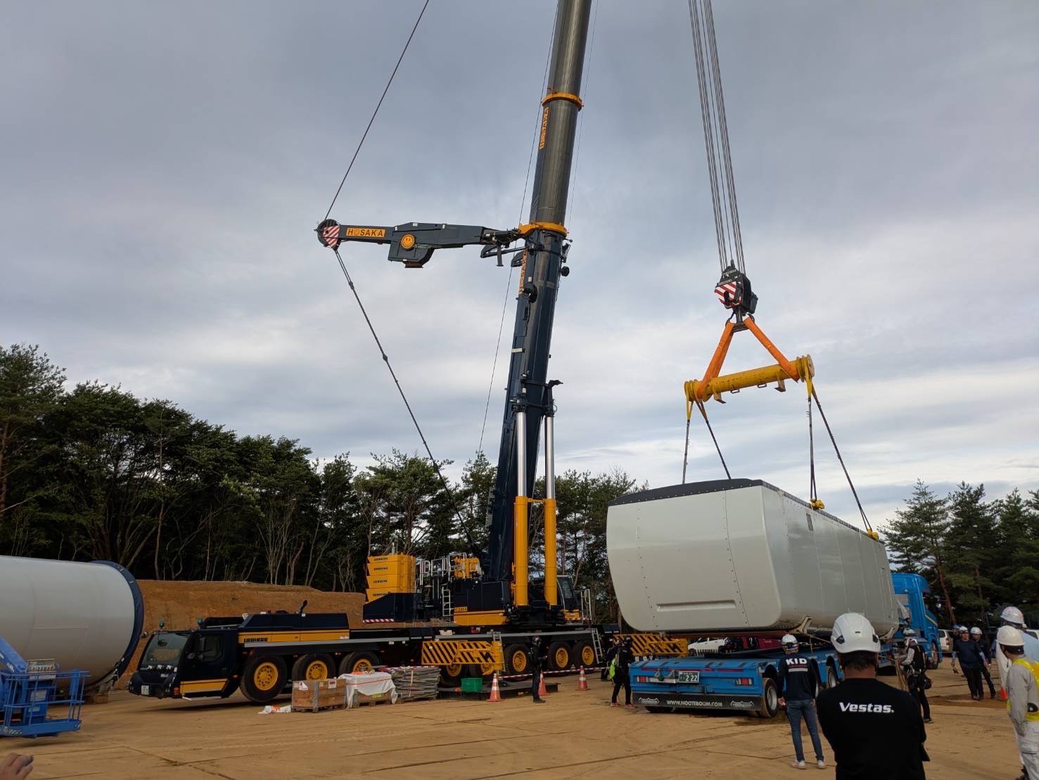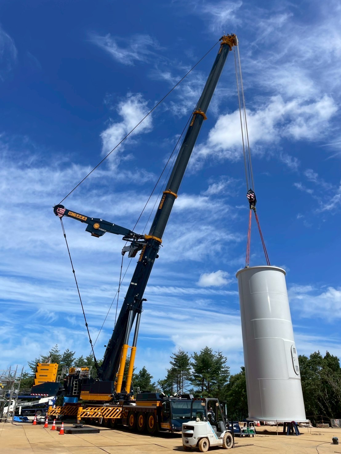 Additionally, in Fukui Prefecture, we contributed to the construction of a wind power facility using our 700t and 250t cranes.