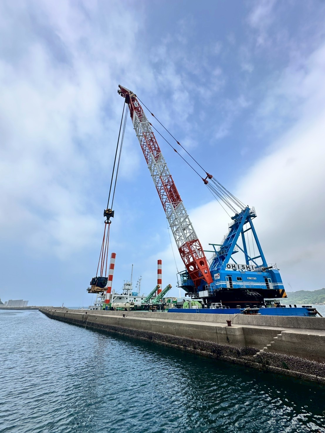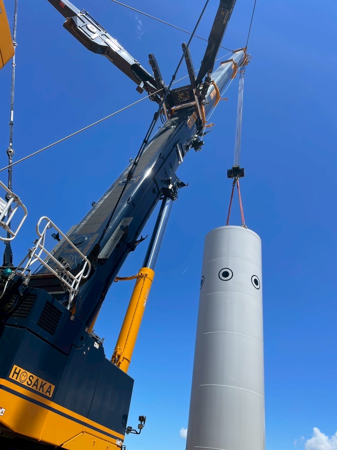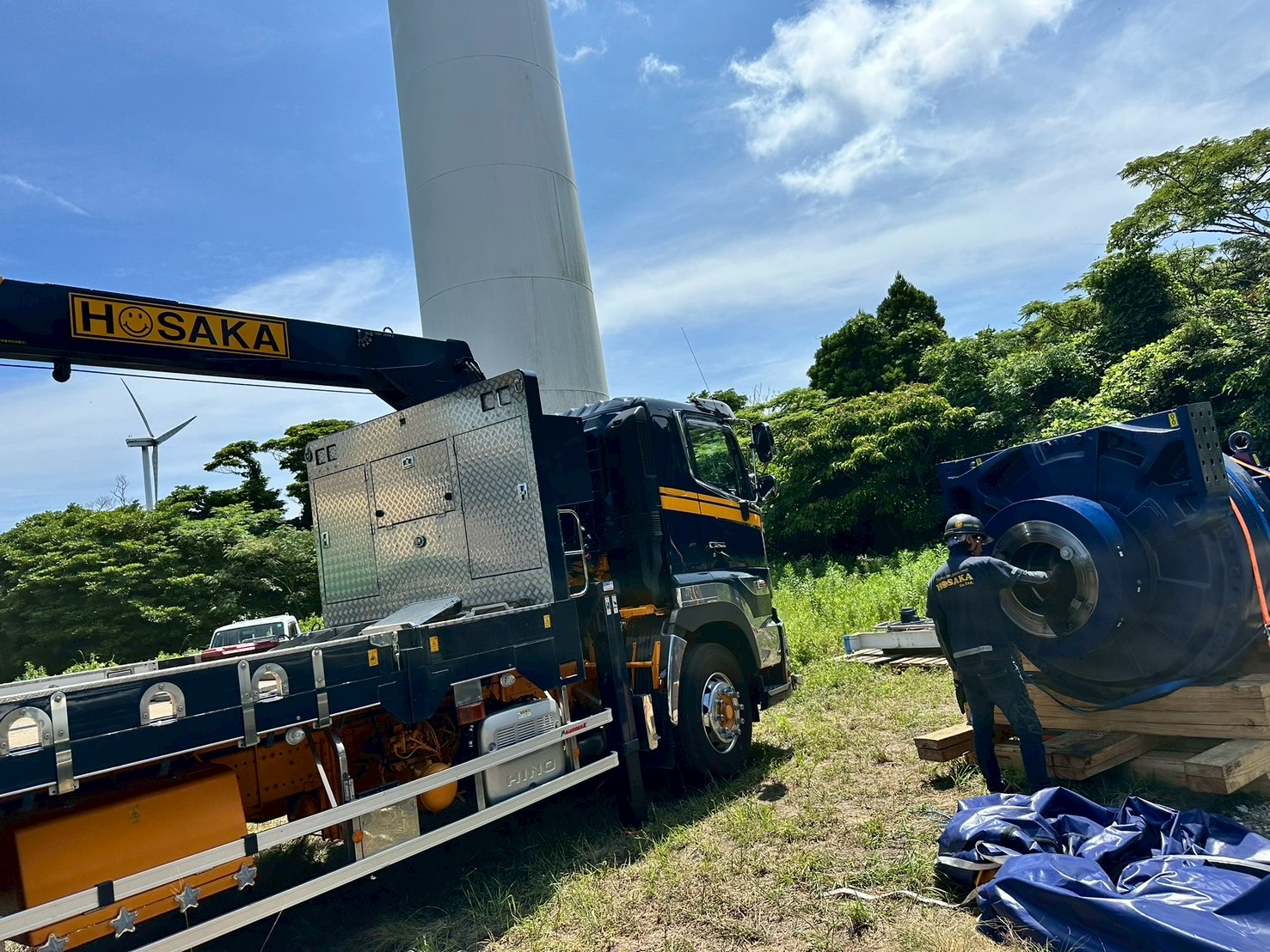 起重機船の手配からクレーン車の搬入、ギアボックスの交換まで、ホサカがワンストップで計画・実行しました。